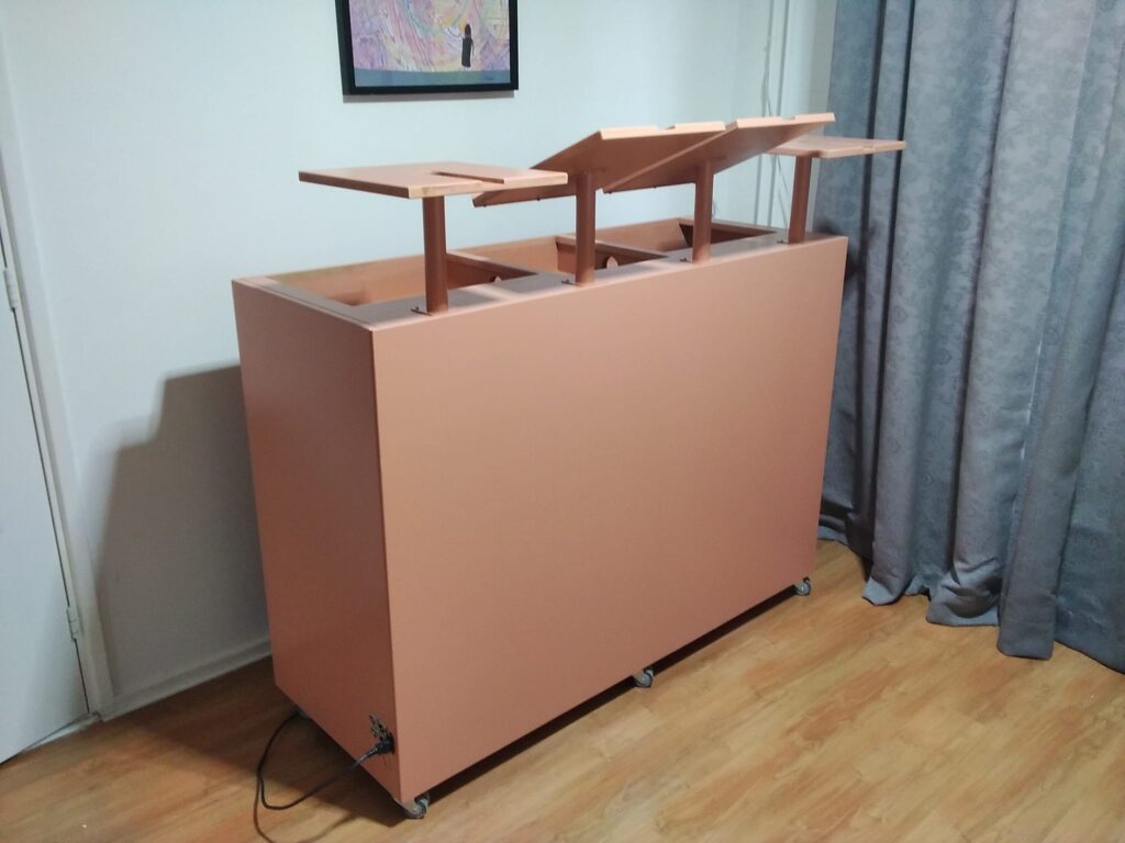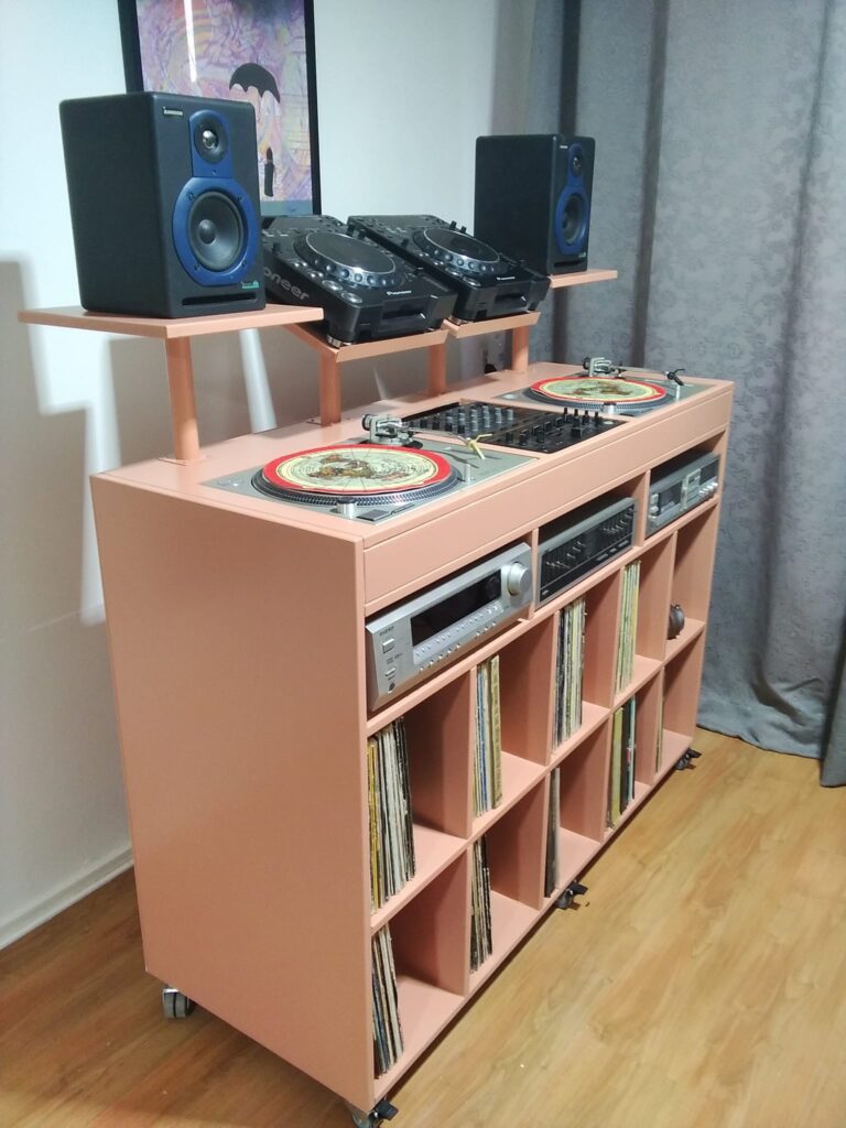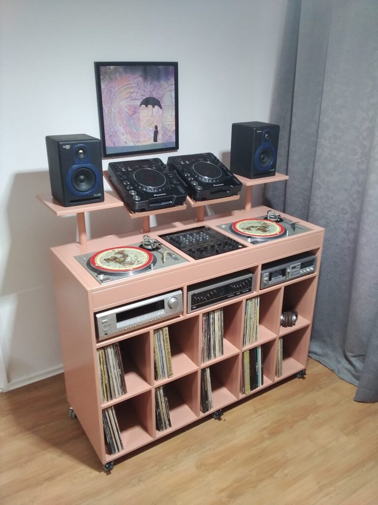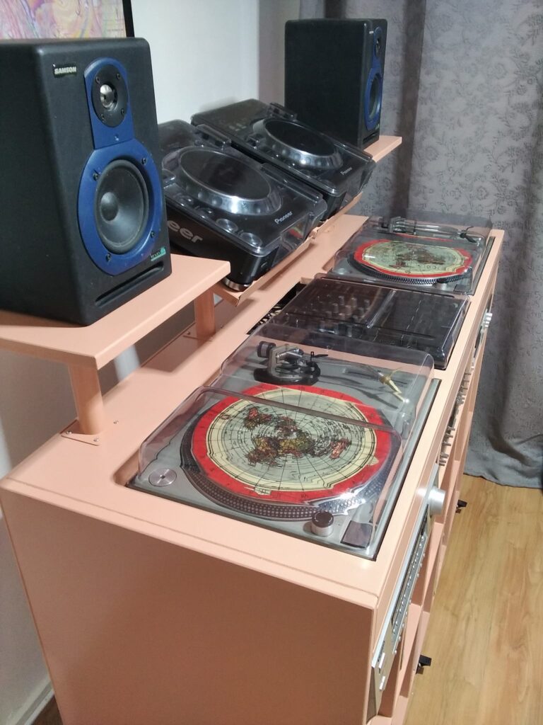 U kunt er ook voor kiezen uw apparatuur aan de bovenzijde ( cd spelers, draaitafels, mixer) door mij op maat, verzonken, te laten inbouwen. Zo heeft u aan de bovenzijde een vlak geheel. Op de foto’s kunt u hiervan voorbeelden zien.