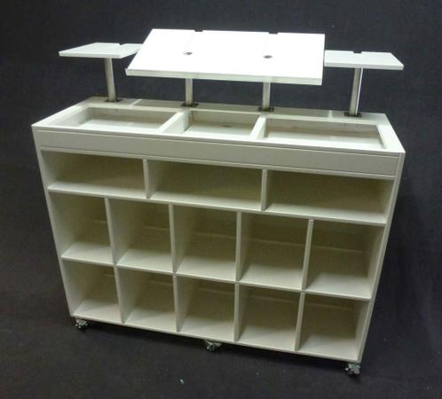 De Radeck 800 DJ Booth ( DJ meubel/platenkast) heeft ruimte voor uw apparatuur en circa 800 vinylplaten.
