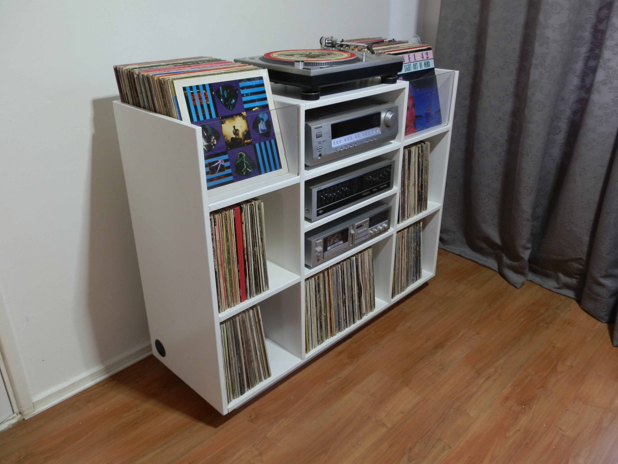 Dit platen/audio meubel heeft ruimte voor ca 750 vinyl langspeelplaten.
