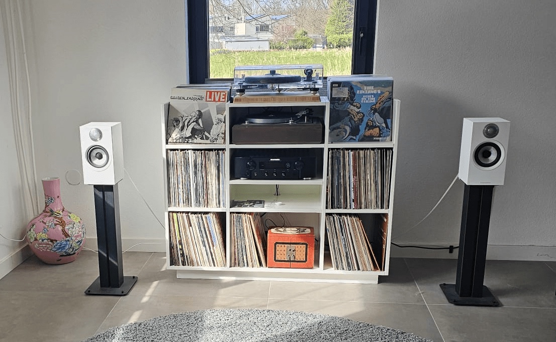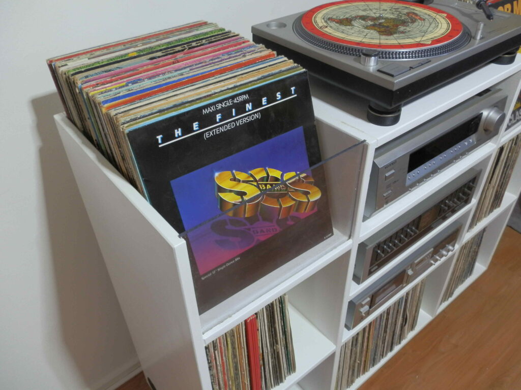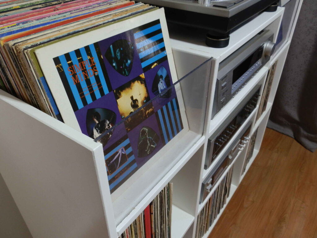 De platen vakken aan de voorzijde zijn voorzien van latjes zodat u uw platen niet door kunt schuiven naar achteren en alles netjes recht op een rij blijft staan.