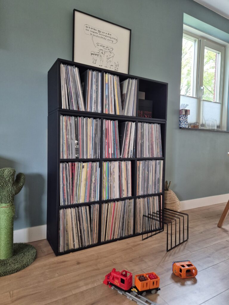De kast heeft 9 vakken, elk 33 x 33 x 33cm. Omdat de vakken niet te breed zijn bent u er zeker van dat uw platen altijd rechtop blijven staan en niet kunnen gaan kromtrekken.